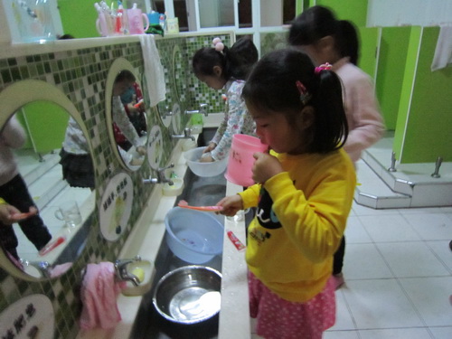 一大早,看到孩子们兴奋地自己拎着一大包的洗簌用品来到了教室,家长说这些都是孩子自己根据记录纸独立准备的,都不让大人帮忙。在夜宿活动中,孩子们拿好自己的物品有序地独立进行刷牙、洗脸、洗屁股、洗脚等睡前个人卫生工作,老师问:“有没有小朋友需要帮忙啊?”孩子们都异口同声地说:“我们长大了,要自己的事情自己做!”家长在看到孩子们活动中的照片后都惊叹:“我本来很不放心,看到孩子们真么能干,感到孩子们真的长大了,应该放手了。”