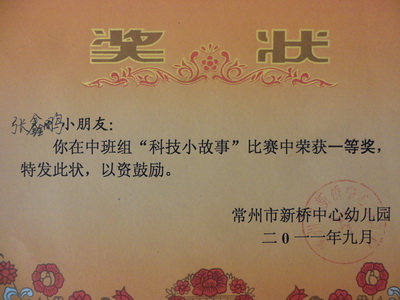 瞧,拿到奖品和奖状的孙静姝,笑的合不拢嘴啦!