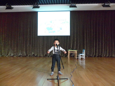 殷李泽佳的动作是最出神入化的了,他得故事《好饿的毛毛虫》不仅有表情有动作,连声音都是那么的好听,难怪评委被他吸引住呢!