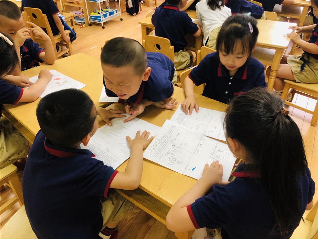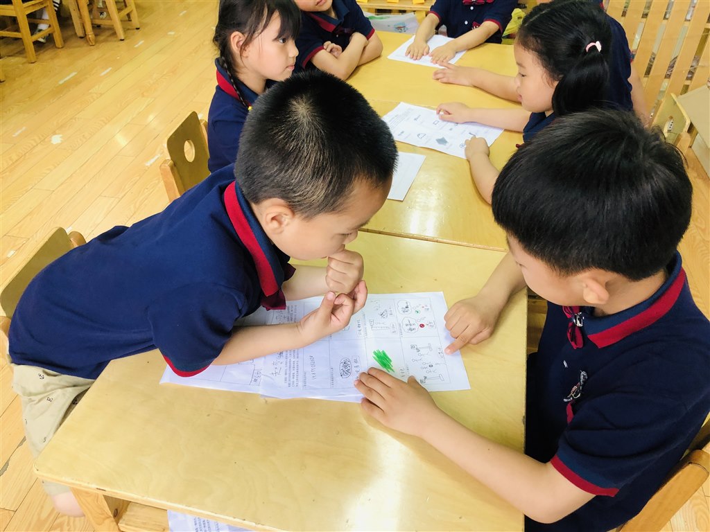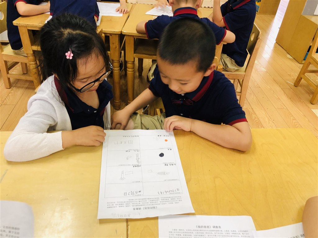 第二组的小朋友在互相分享自己爸爸的信息。