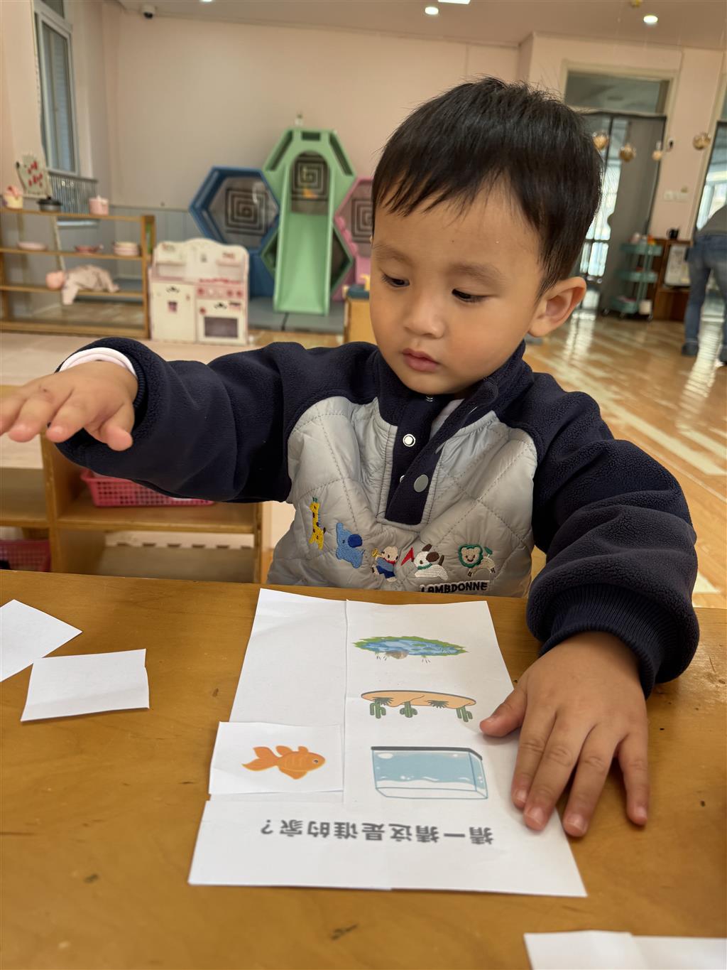 本次“小动物找家”活动以生动有趣的形式,引导幼儿认知不同动物的生存环境,如:金鱼与鱼缸、骆驼与沙漠、青蛙与池塘,清晰理解不同动物的栖息环境特点,建立“动物 与家园”的对应认知。通过观察、指认、互动等环节,锻炼了幼儿的观察力、判断力与语言表达能力,为幼儿后续探索自然、关爱动物奠定了良好基础。