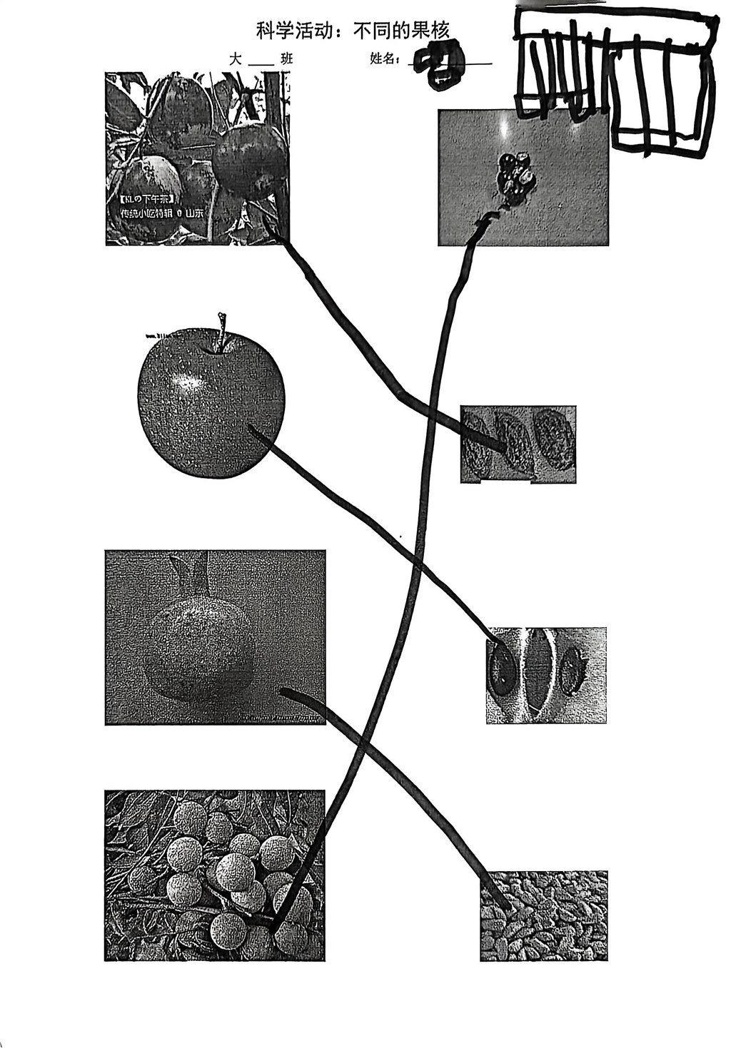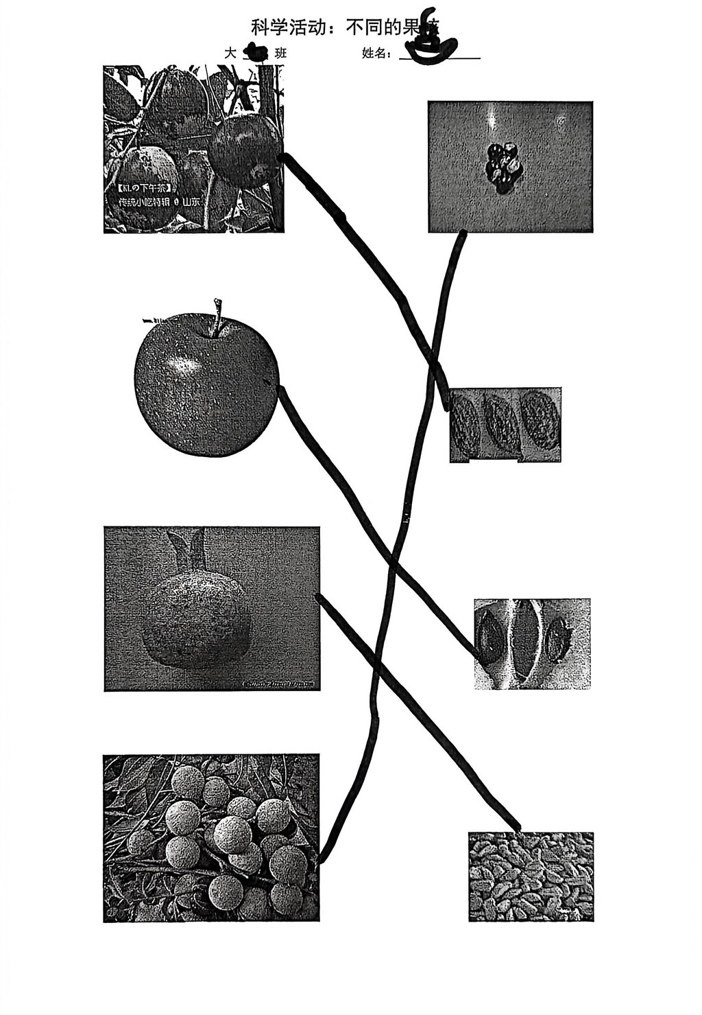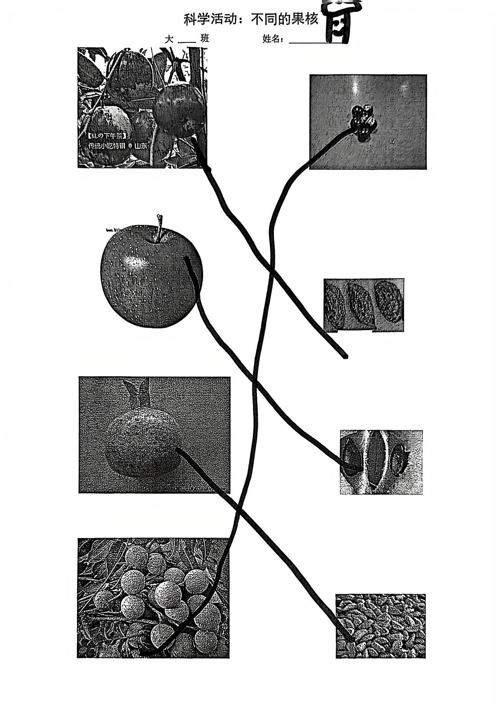 科学《不同的果核》记录纸